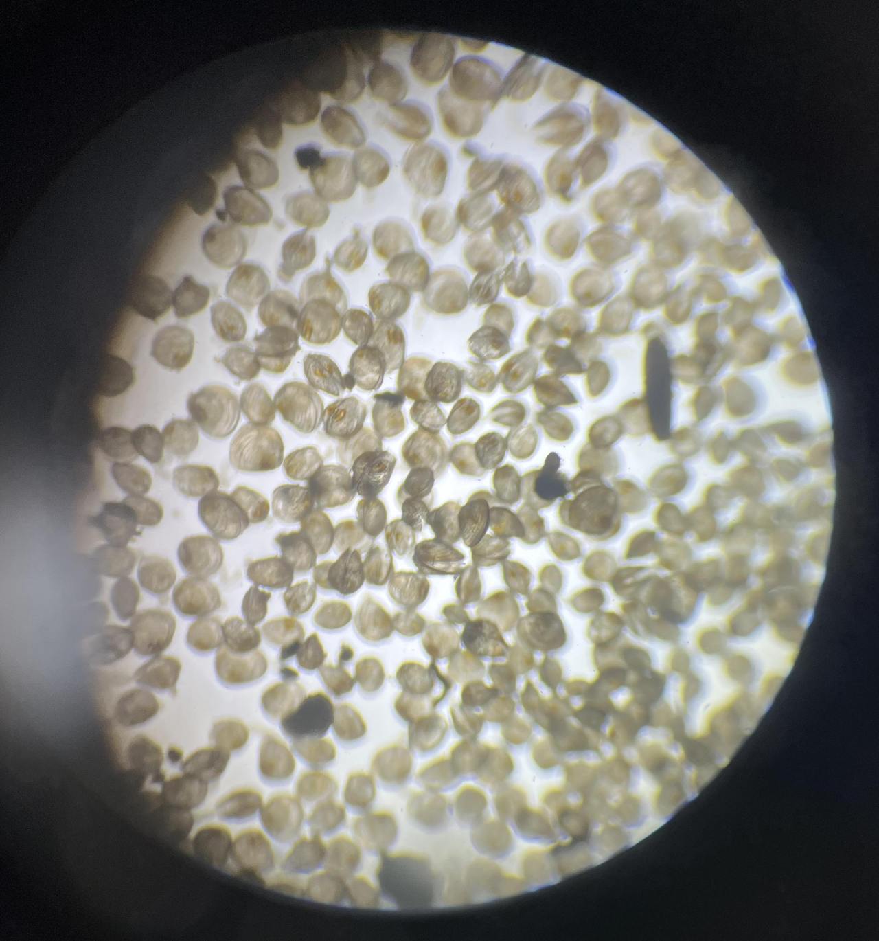 显微镜下活跃的泥蚶幼苗。记者 胡静漪 摄
