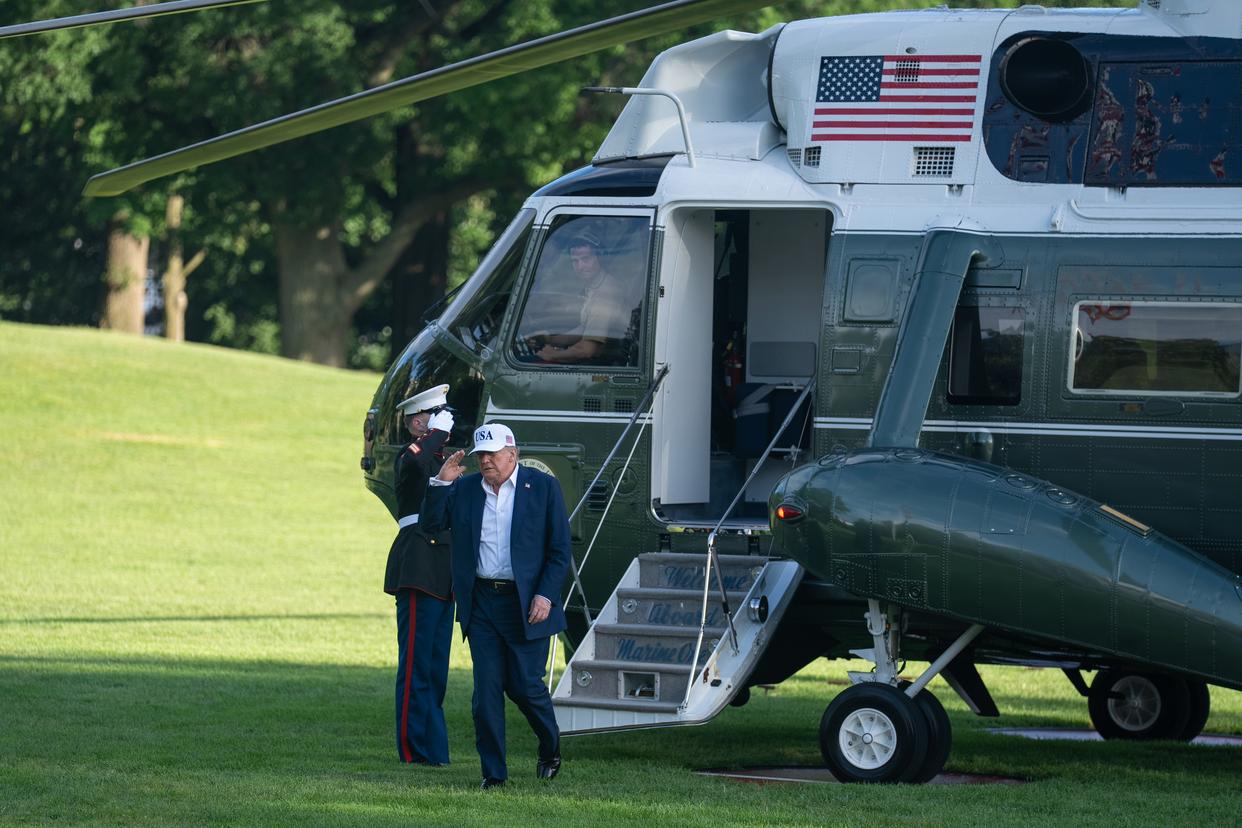 7月6日,美国总统特朗普乘直升机返回华盛顿白宫。新华社记者胡友松摄