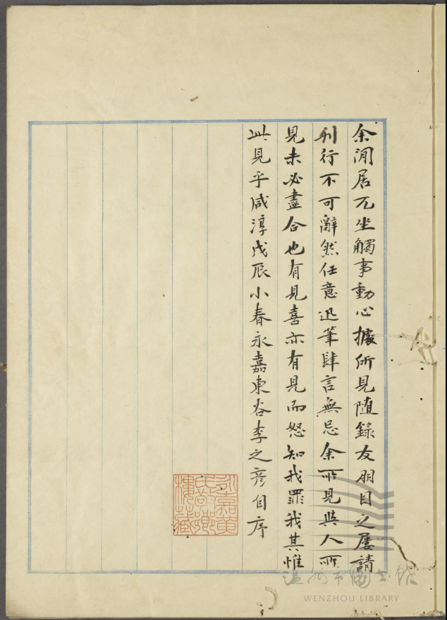 △自序落款为“永嘉东谷李之彦”,图为《东谷所见》民国抄本,温州市图书馆藏