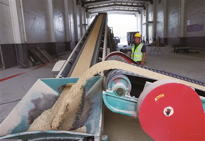 昨日,瑞安马屿粮食储备库内,金黄的稻谷被收购入库。 郑鹏 摄