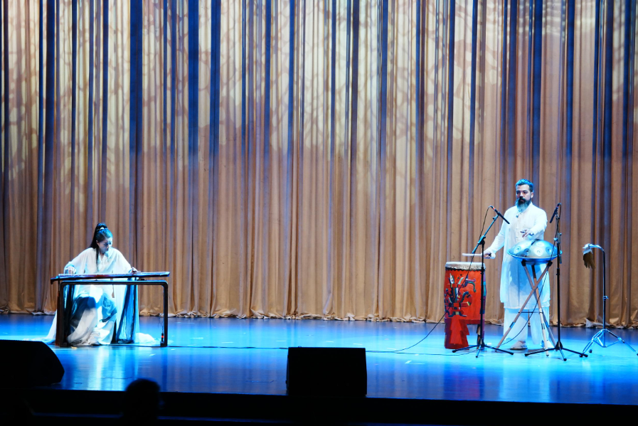 这场双语主持的音乐会在丹麦乐队奏响的中丹两国国歌中拉开序幕。上半场“古韵今风·温润之州”演出,主打中国风。温州市实验中学民乐团身着传统服饰,带来民乐大合奏《物动心感》、小合奏《千里》。温州理工学院杨小敏带来古筝、埙演奏的《空山静》。古琴演奏者谷雪艳和外籍手碟演奏者雨果带来中国千年古曲《广陵散》。温州市实验中学合唱团唱响充满特色的壮族山歌《米供歌谣成传说》。这些民乐赢得了台下丹麦来宾的阵阵掌声。