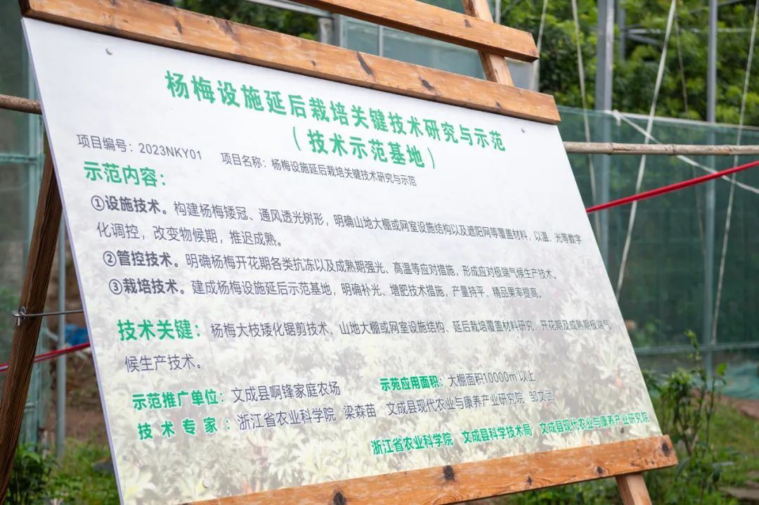 浙江省农业科学院研究员梁森苗表示,文成杨梅是文成特色支柱产业,种植技术位居全省前列,并且具有海拔高、地域广等优势。此次考察点,文成阿锋家庭农场,采用的便是省农科院研发的杨梅设施延后栽培成套技术,其高山杨梅网膜覆盖延后栽培技术开创了全省先河。