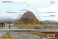资料图为西夏陵3号陵陵塔与放置在其斜前方的复原示意牌。