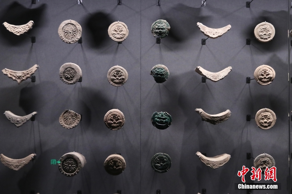 资料图为西夏陵博物馆展出的瓦当、滴水等构件。