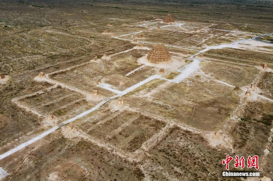 资料图为6月27日航拍的西夏陵1号陵(下)和2号陵。