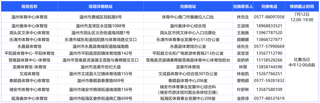 使用规则:需在比赛当日中午12:00前联系场馆联系人预约兑换比赛门票;每场比赛共可兑换50张门票,兑完为止。