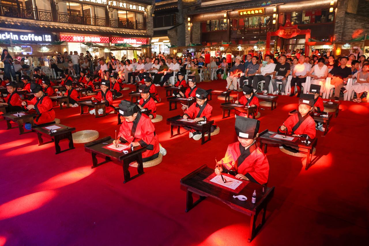 “妈妈,原来古代的房子长这样!”今年6岁小朋友潘祎尔过完这个暑期将正式成为小学生,他参与活动心情激动。在启蒙仪式上,孩子们身着传统服饰,在老街的古韵氛围中,依次完成正衣冠、拜师礼、朱砂启智、击鼓明智、启蒙描红等一系列传统礼仪流程。“每一个环节都承载着中华传统文化对蒙童成长的美好寄托。”潘祎尔的妈妈认为,活动寓教于乐,也增进了亲子合作与互动。