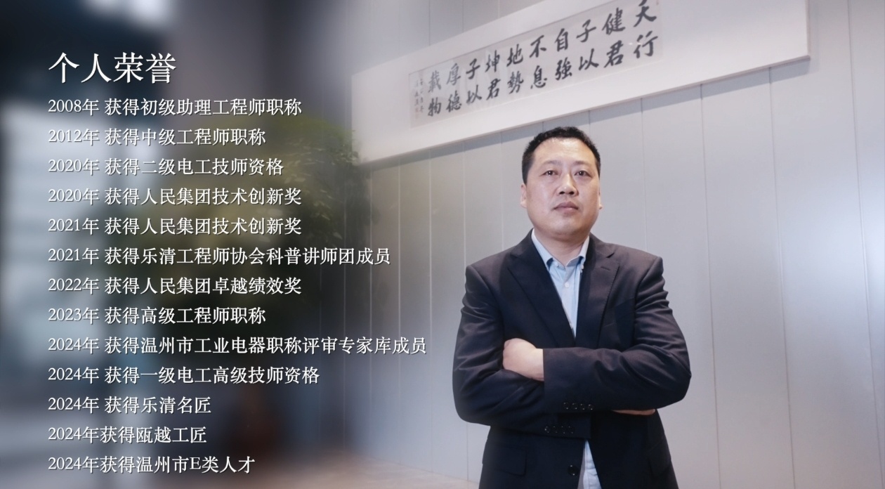 在低压电器的世界里,每一次技术突破都镌刻着匠心印记,每一份安全保障都承载着不渝坚守。翟连钢从普通技术员起步,用18年时光完成了从助理工程师到高级工程师、从技师到一级高级技师的华丽蜕变。这一路的职称晋升,既是专业能力的进阶,更是他对“技术无捷径,唯有踏实”信念的生动诠释。他一路学习、探索、成长,先后获评“乐清名匠”“瓯越工匠”。