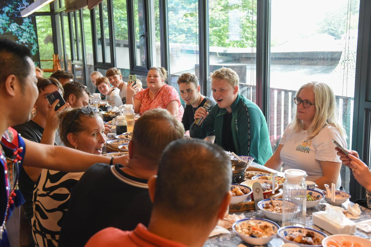 随后,乐队一行前往西坑畲族镇让川民族村。他们走进这座充满畲族风情与江南韵味的古村落,感受着畲族民居、畲族文化。让川民族村还为他们精心准备了“畲乡长桌宴”,风味独特的乌米饭、地道好吃的农家菜,一道道特色美食依次上桌,为乐队成员带来一场舌尖上的盛宴。席间,畲族村民们还为他们献上传统民歌与舞蹈,现场活泼有趣,乐队成员也被这欢乐的氛围感染,纷纷加入其中。