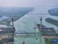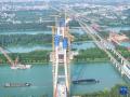 大桥主桥上部结构施工转入钢梁悬臂拼装阶段,主塔建设已完成90%。