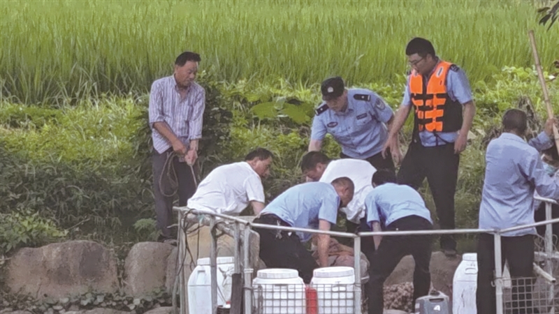 接到求助后,瓯海区公安分局瞿溪派出所民辅警迅速行动,带上救生圈、救援绳等救援设备,从派出所大院飞奔而出,直奔老人落水区域。