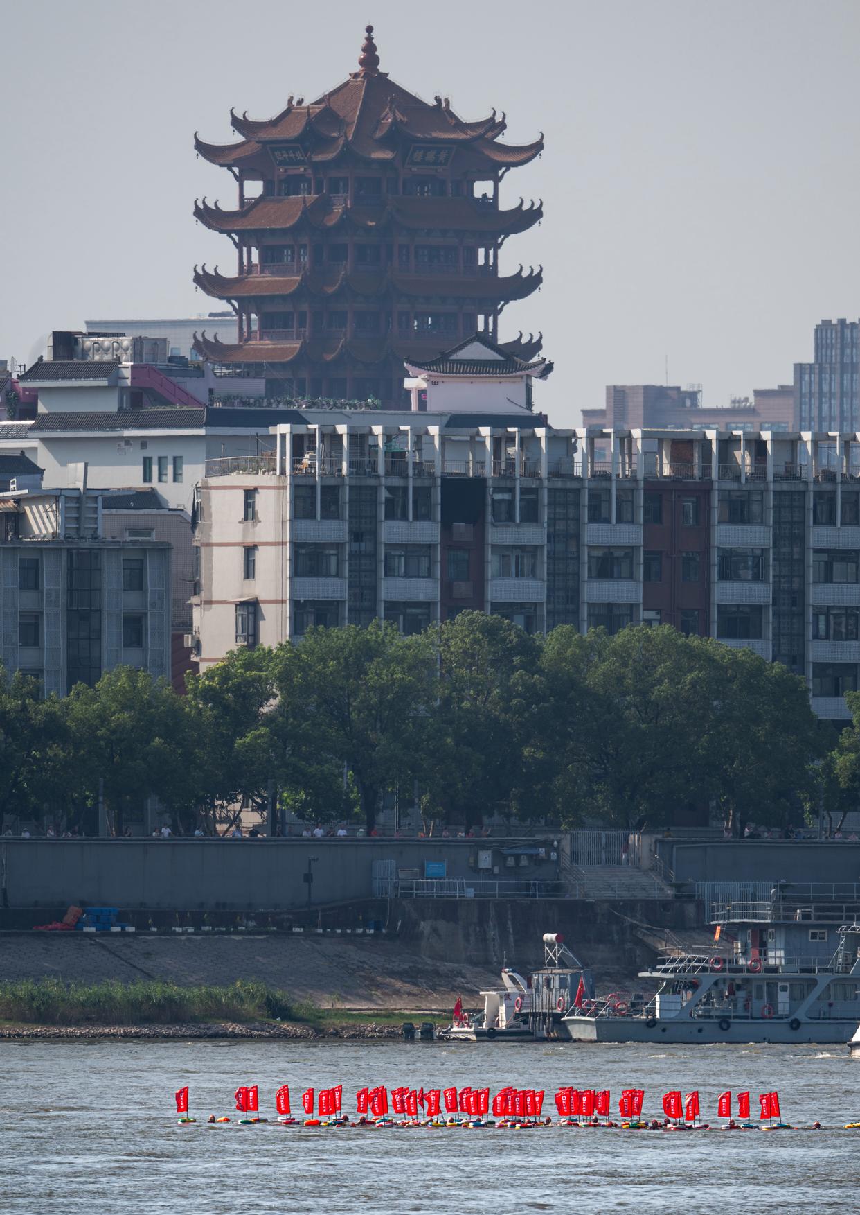 7月16日,选手们横渡长江。新华社记者 肖艺九 摄