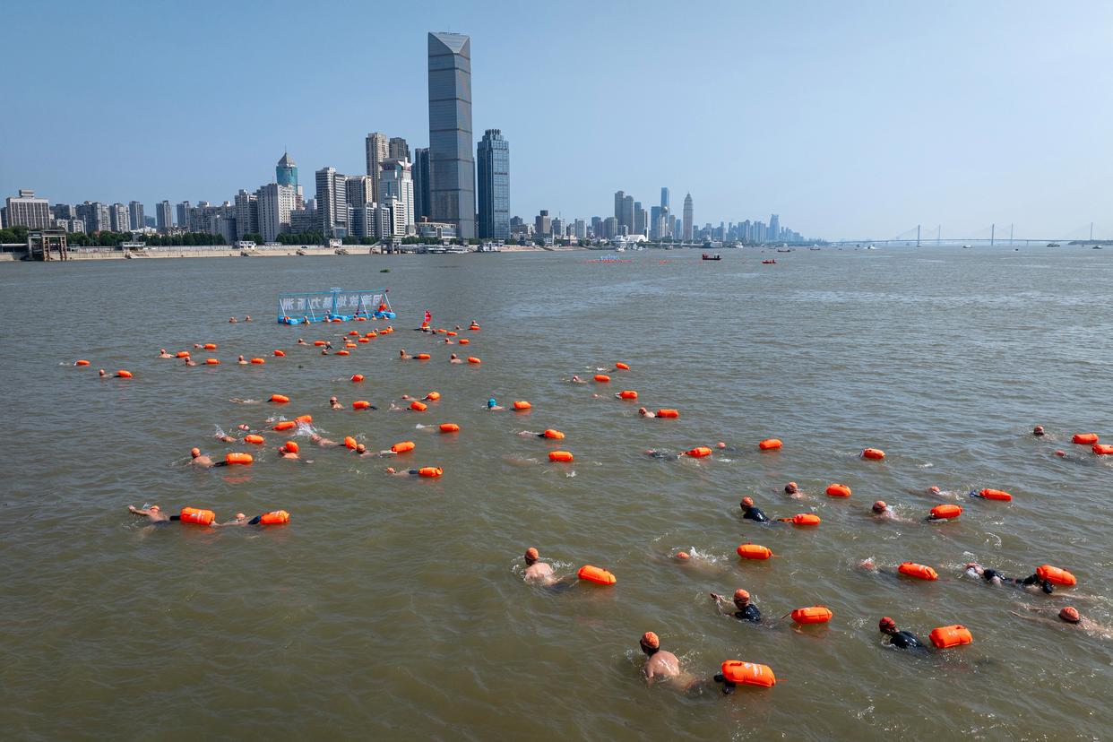 夏日的长江并不平静,尤其此时正值汛期。江水表面泛着粼粼波光,水下却暗藏漩涡与激流,稍有不慎便可能偏离方向或被拖入江底。但这样的挑战并未让人却步。