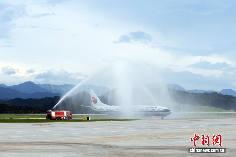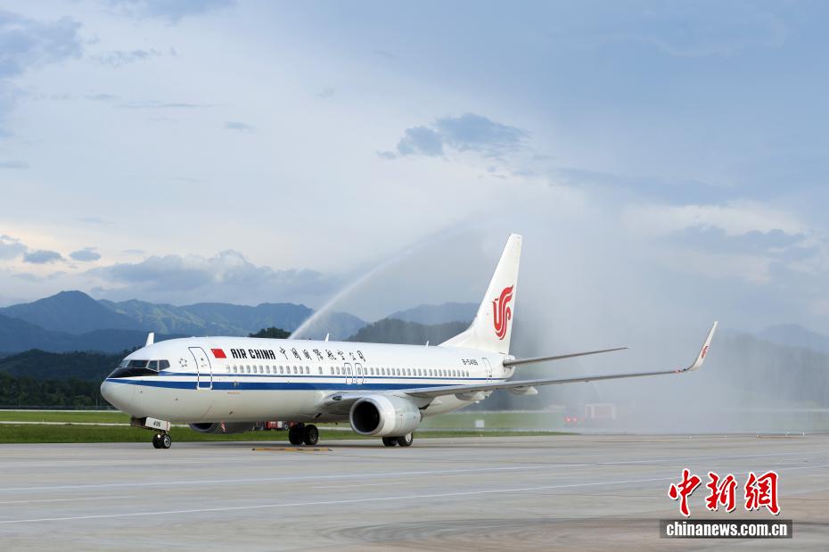 7月18日,客机在跑道滑行。当日,浙江丽水机场正式通航。该机场占地3430亩,能够起降波音737、空客320、中国国产大飞机C919等主流机型,本期可满足年旅客吞吐量100万人次、货邮吞吐量4000吨的使用需求。此外,丽水有47.3万华侨华人遍布全球160多个国家和地区,丽水机场正式通航,也为侨胞们带来了便利。中新社记者 傅飞扬 摄