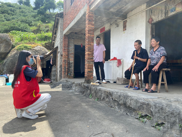图为“香溢”志愿者为山村老人拍摄照片。饶正航/摄