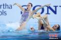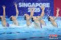 7月20日,在新加坡举行的2025年世界游泳锦标赛花样游泳集体自由自选决赛中,由常昊、程文涛、戴诗意、冯雨、李岫宸、林彦含、向玢璇、徐汇妍组成的中国队,以348.4779分夺得金牌。中新社记者 富田 摄