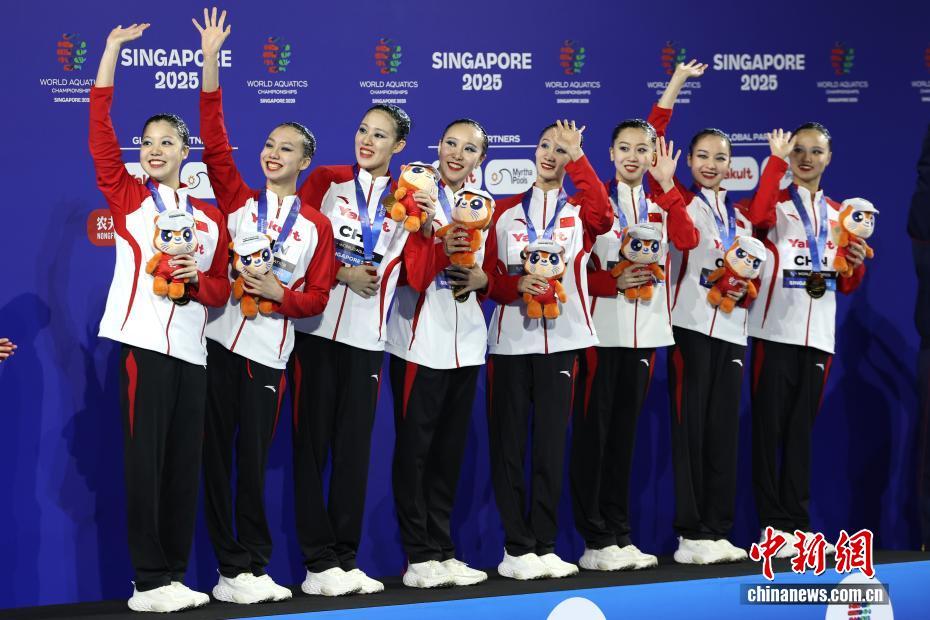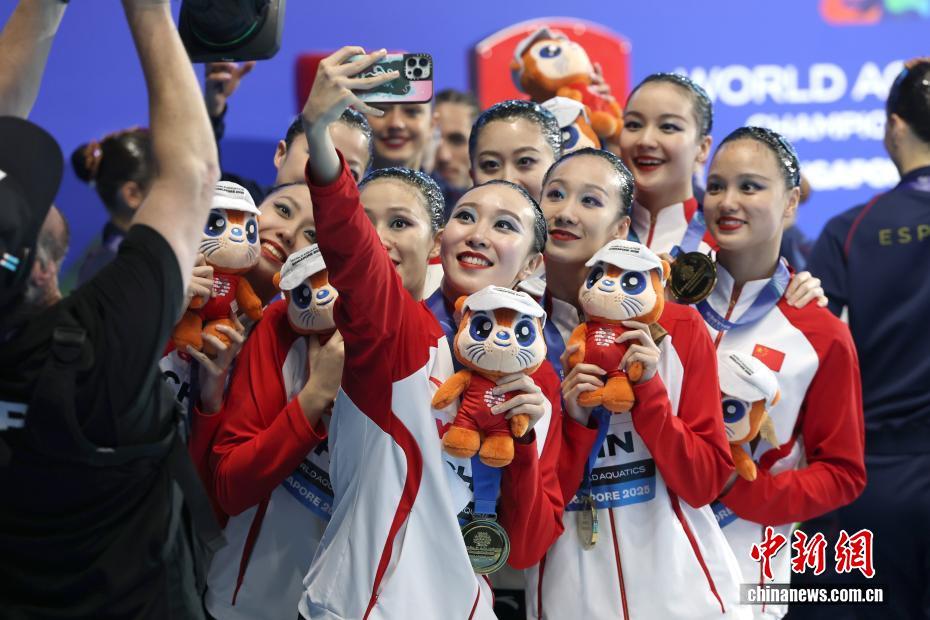 7月20日,在新加坡举行的2025年世界游泳锦标赛花样游泳集体自由自选决赛中,由常昊、程文涛、戴诗意、冯雨、李岫宸、林彦含、向玢璇、徐汇妍组成的中国队,以348.4779分夺得金牌。日本队、西班牙队分获二、三名。
