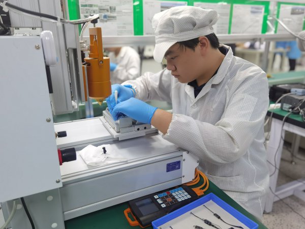 该产品由浙江回车科技有限公司与温州市瓯海眼镜有限公司联合研发生产。当天,记者走进瓯海眼镜公司,在一个洁净明亮的无尘车间见到:一个个精密的眼镜零部件经强吸力的除尘处理后,沿着传送带精准输送到各个工位,工人们在标准化流程下进行组装。据车间负责人介绍,该产线每小时可生产70台智能眼镜,年产能达15万台,价值900万元的订单将于本月底开始发往北美市场,开启瓯海智能眼镜的全球化征程。