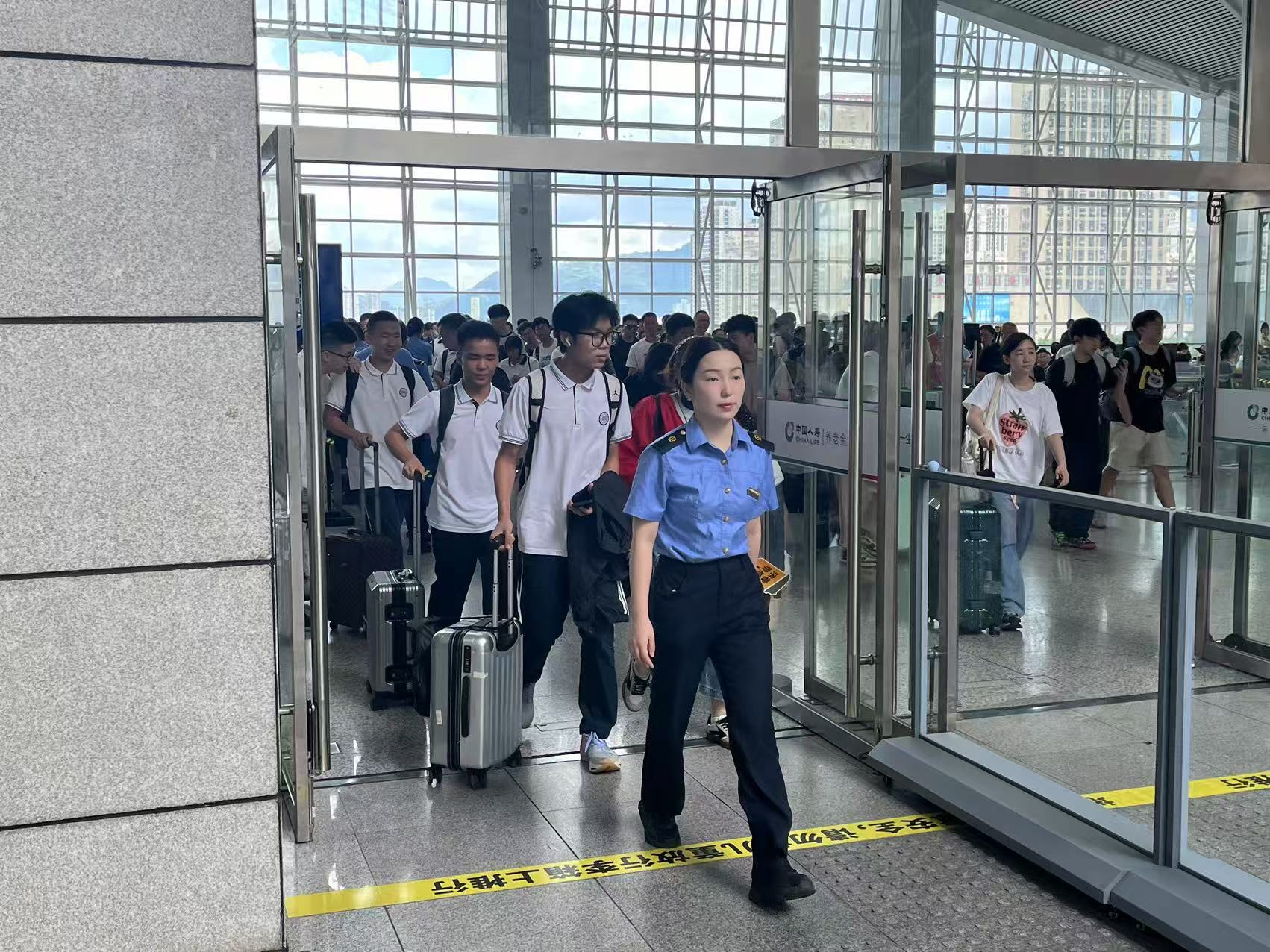 图为铁路温州南站护航研学团体的师生们顺畅出行。