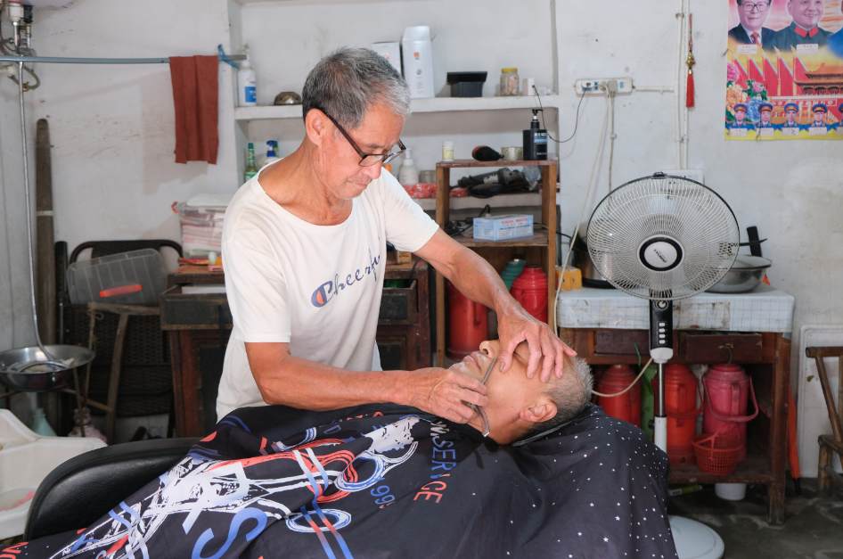 2019年,我刚为顾客刮完胡子,门外便走进一位西装革履的年轻人,向我表明自己在经营一家连锁品牌,希望以翻倍的租金盘下这家理发店,却遭到我坚定的回绝。其实,这不是我第一次拒绝诱惑。早年间,手机店、奶茶店的老板都盯上了这间店面,开出的条件一次比一次诱人,却一次又一次无功而返。“村里理发店少,为了让街坊们方便理发,我不能一走了之。更何况,这么多年了,已经和街坊处出了感情。钱赚不完,但这些情谊,丢了就再也找不回来了。”事后问及原因,我这样说。子女们也劝我搬到新房里去,但我始终割舍不下这家小小的理发店,只因这里浓缩着全村的日子——孩子在外地的王阿婆,每次在这里理完发都要和我唠半小时家常;独居老人陈阿伯说,每次理发,我都耐心听他唠叨儿子的事,剪完还帮他给老花镜擦得锃亮;几十年来,村里所有孩子满月后,都会带到我这儿“打光光”,现在,我同样还是娄桥小太阳幼儿园孩子们的专用理发师……“我从小就在这里理头发了,现在62岁,还在这里剪头发,金师傅人非常好,我们大家都知道他,都愿意来他店里理发。”村民金秀林说。六十多年来,这家理发店早已成为河庄村不可或缺的一部分,我早已成了村民如家人般的存在。