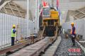 7月22日,在贵州省盘州市茶厅左线隧道出口施工现场,随着最后一对500米长钢轨稳稳落下,贵州盘州至兴义铁路全线铺轨工程圆满完成。该铁路全长约98公里,自沪昆客专盘州站引出,经盘州市石桥镇、响水镇、保田镇,进入兴义市,是贵州省“市市通高铁”的最后一个项目。图为铺轨现场。中新社记者 瞿宏伦 摄