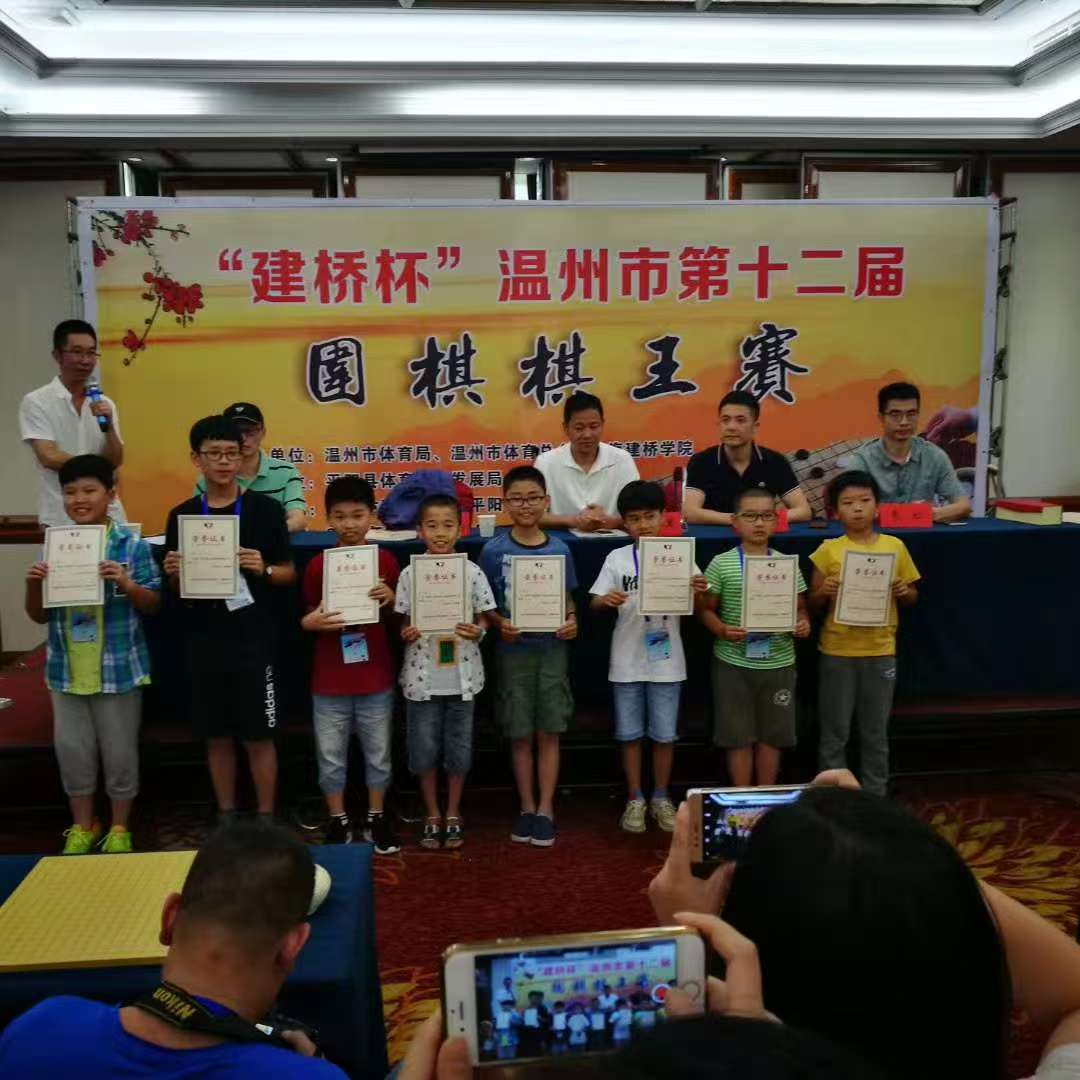 吴止境(左四)获得第十二届棋王赛少年组第4名