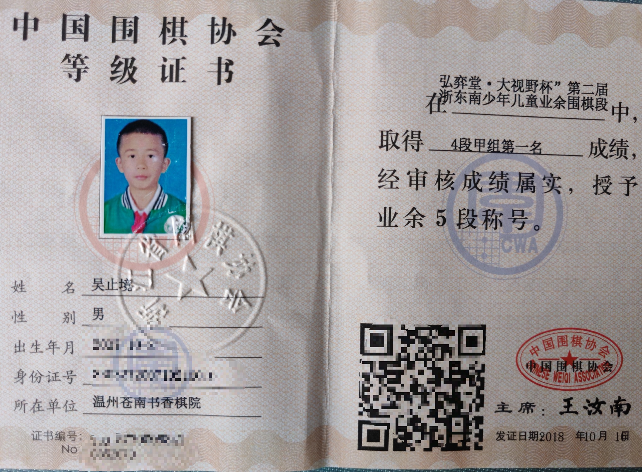 高考706分的苍南学霸吴止境还是个围棋业余5段高手