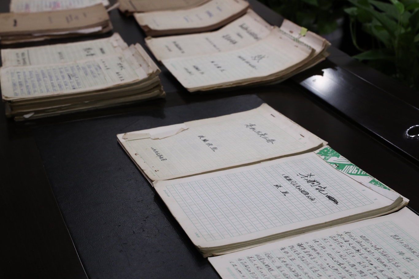 捐赠仪式现场,张瀚、张泠与博物馆工作人员将分装整齐的手稿、证书逐一取出,进行清点交接。