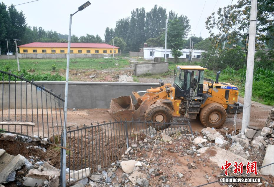 7月25日,河北省保定市易县北淇村工程车辆正在抢修道路。河北省保定市易县防汛抗旱指挥部办公室25日最新消息,受24日至25日强降雨影响,该县共造成182个村受灾,转移686户1697人,无人员伤亡。目前,抢险救援正在有序进行。中新社记者 韩冰 摄
