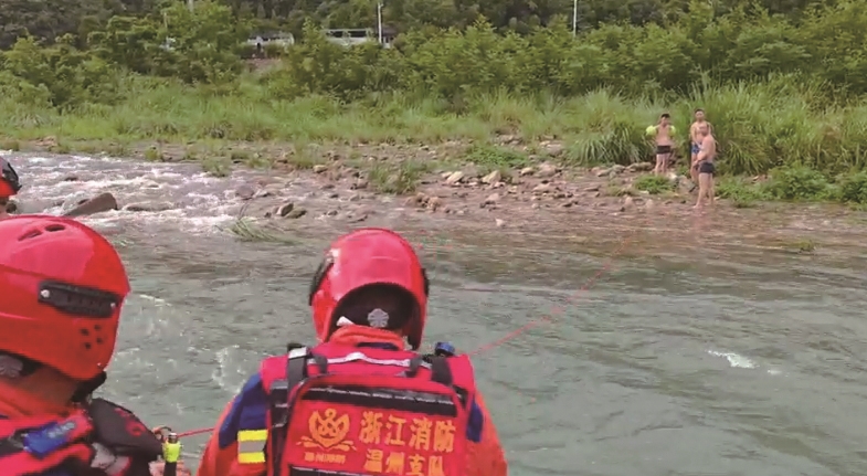 溪水暴涨吞噬浅滩三人被困 乐清消防激流架“桥”成功营救