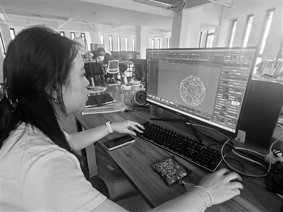 郑建妹在编排无人机群的飞行轨迹 许雅晶/摄