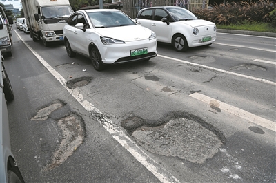 为何连续降雨过后,沥青路面会出现坑洞和破损?该负责人介绍,这主要和沥青路面的特性以及雨水的作用有关。沥青路面中的沥青在长期使用后会逐渐老化,黏结力下降。连续降雨时,雨水会渗透到路面基层,如果基层存在空隙或不密实的情况,雨水就会在里面积聚。