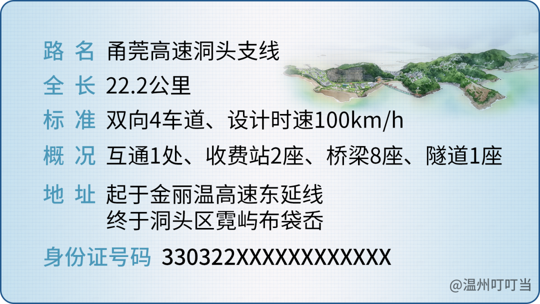 这一项目全长22.2公里,按双向4车道设计,设计时速100km/h,总投资78.52亿元,分4个标段建设,建设工期42个月,建成后将成为温州最长跨海高速,洞头本岛对外的第一条高速、第二条通道。