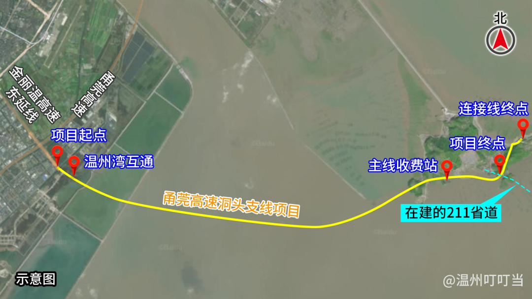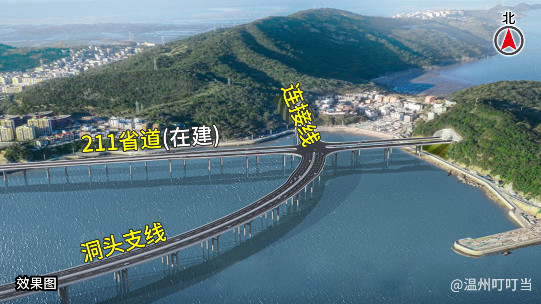 一头起于金丽温高速东延线机场枢纽,一头接着洞头在建的211省道霓屿至北岙段,这就是温州在建的甬莞高速洞头支线项目。