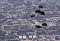 这是7月30日拍摄的埃及军机向加沙地带空投的人道主义援助物资。