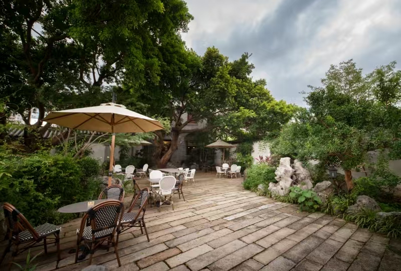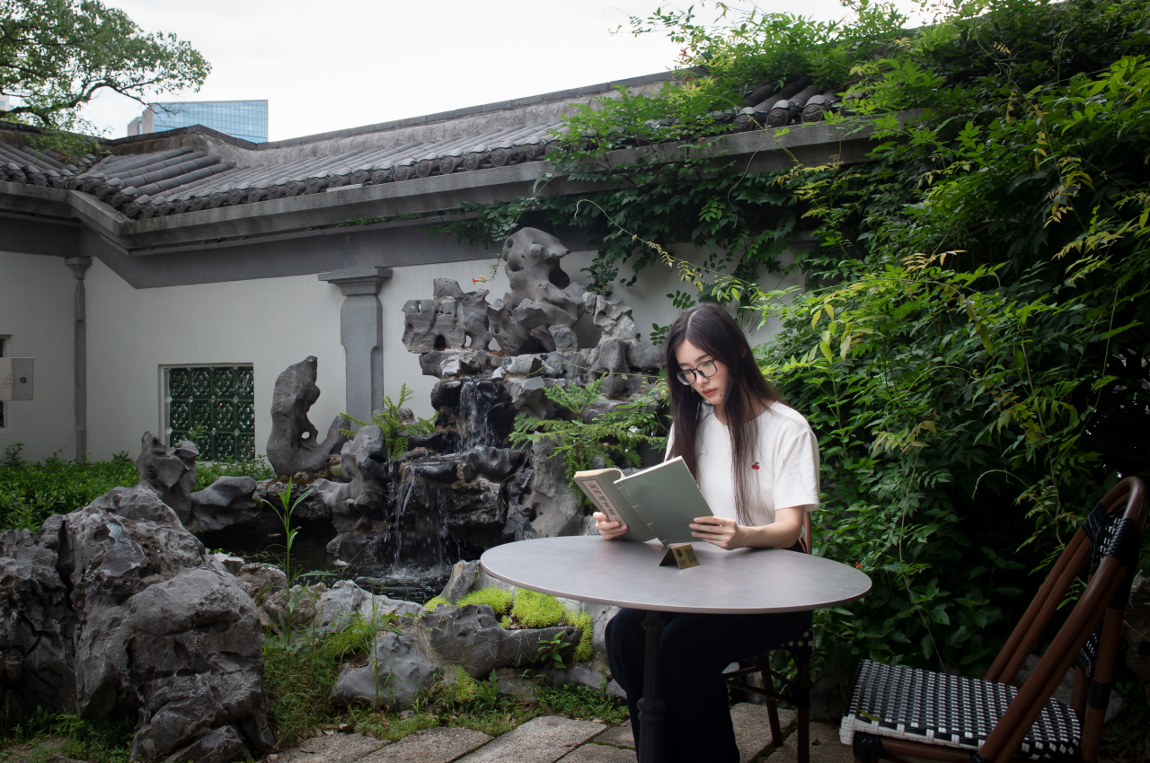 迈入大门,便是布局错落的庭院,门口造型独特的假山奇石间,藏着一处小巧的瀑布,流水叮咚;院内绿树浓密,树下摆放着几张休闲座椅供游人歇脚——这里,正是温州百姓假日里放松心情的好地方,园林的清幽与生活的气息在此交融。