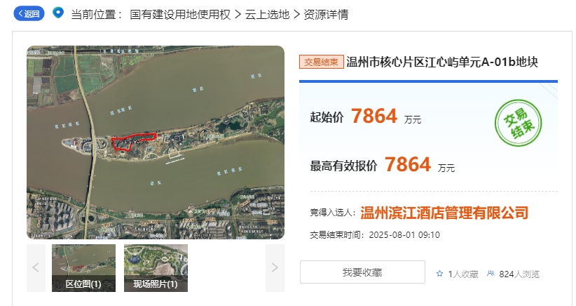 8月1日,温州市核心片区江心屿单元A-01b地块的挂牌出让结果揭晓。温州滨江酒店管理有限公司以底价7864万元成功竞得,这意味着江心屿首个高品质、高标准的高端度假酒店按下了“加速键”。