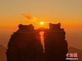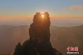 图为航拍世界自然遗产地梵净山红云金顶日落美景。(无人机照片)