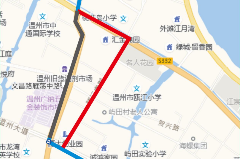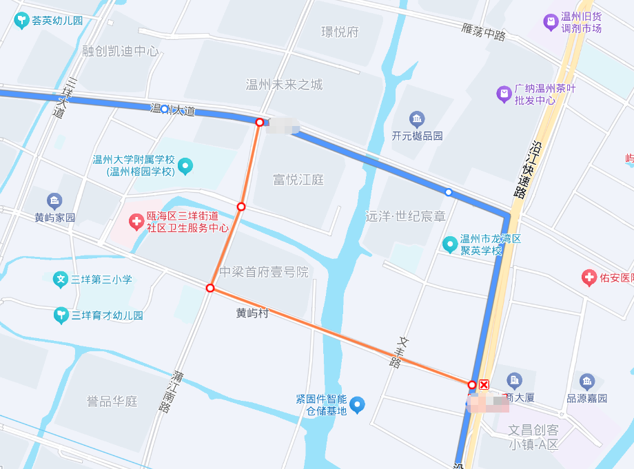 由三桥下首末站始发,原线行驶至温州大道和蒲江南路交叉口,右转改经蒲江南路、黄屿大道、兴区路、文昌路,恢复原线至浙南科技城首末站(往返)。