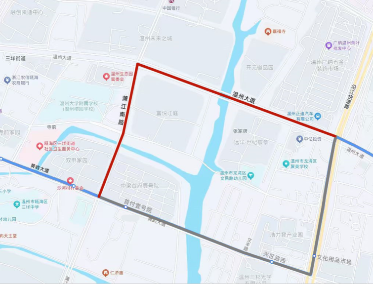 小布从市交运集团获悉,因沿江快速路一期东段工程施工,公安机关交通管理部门将于8月2日至8月31日对温州大道与文昌路交叉口南北方向实行交通管制,禁止机动车辆通行。