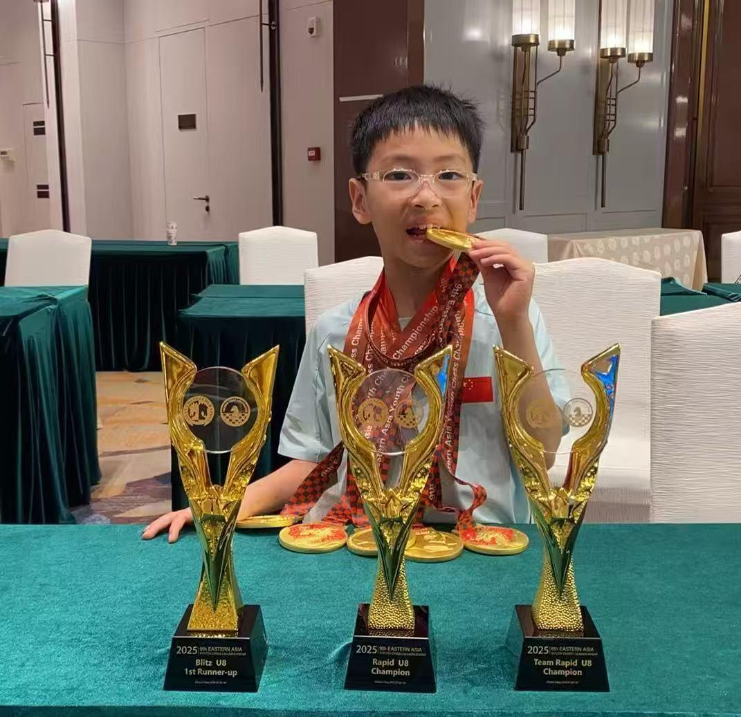 原标题:东亚青少年国际象棋锦标赛 温州7岁小将金昱忻夺冠