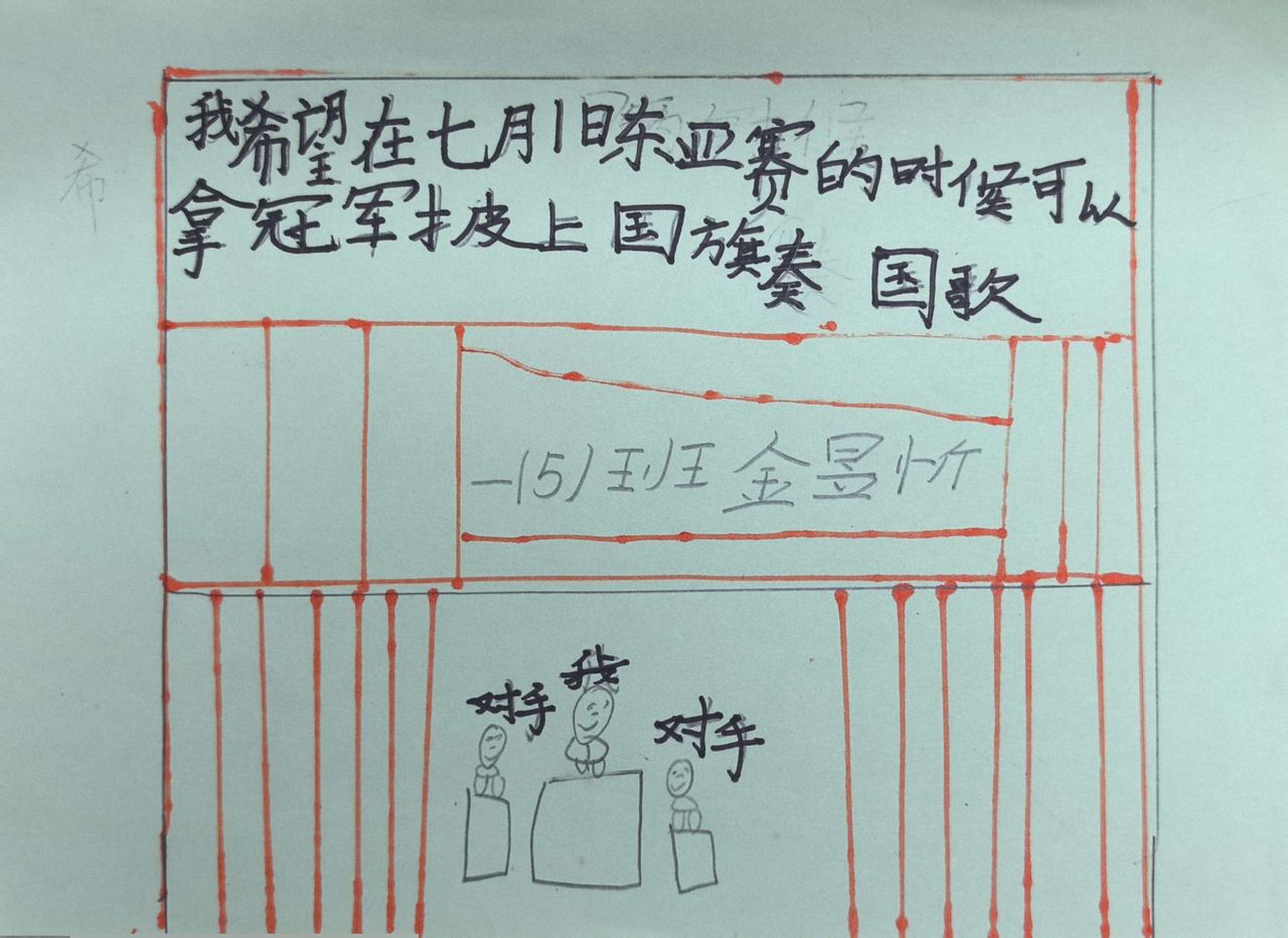 “昱忻同学的表现在我们意料之中。”金昱忻的班主任、温州市实验中学附属小学教师范艾伦介绍,小昱忻在学校里表现很活跃,课堂上回答问题积极,团队荣誉感也很强。虽然学棋要花费很多时间,但学习上一点都不含糊,“他经常说要为国争光,期末还专门写了一个计划,这次比赛终于实现了自己的目标。”