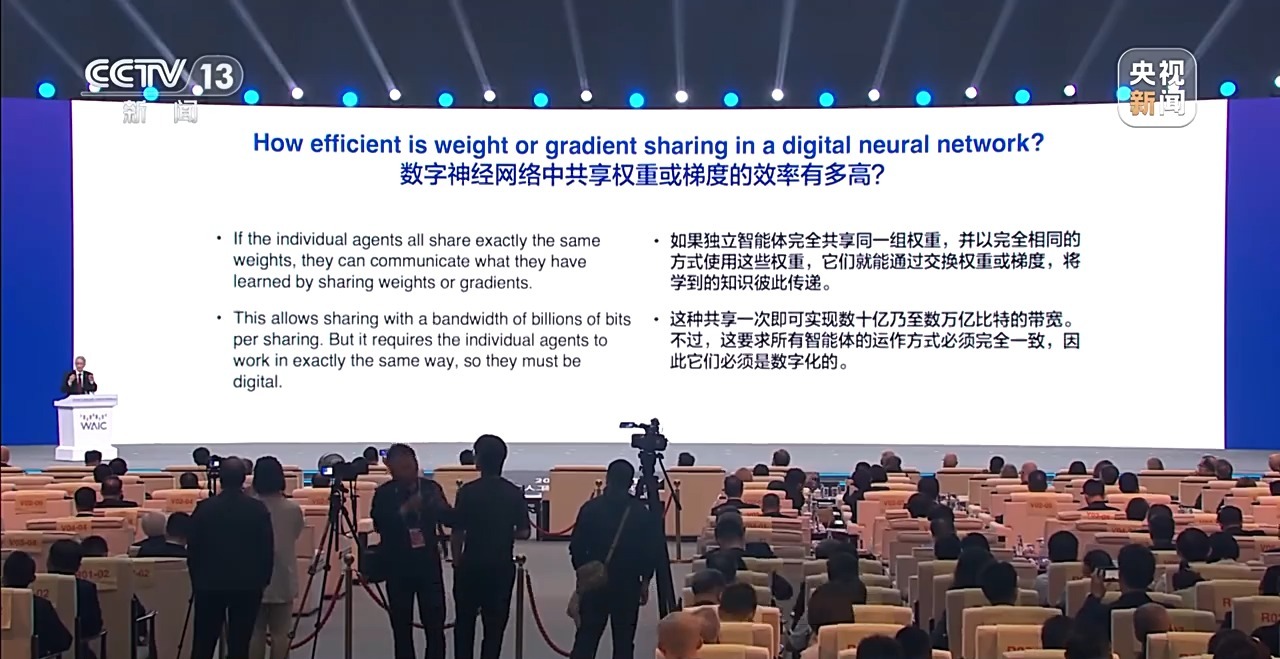 今年77岁的杰弗里·辛顿,从1985年就开始进行语言模型的研究,被称为深度学习领域的奠基人。本届大会首日的主论坛,他的演讲就引起了舆论极大的关注。他在演讲中进一步指出,几乎所有专家都认为,我们将开发出比人类更智慧的人工智能。但是,我们人类早已习惯作为顶级智能体存在,导致很多人难以想象被更智慧的人工智能主宰世界会是如何?
