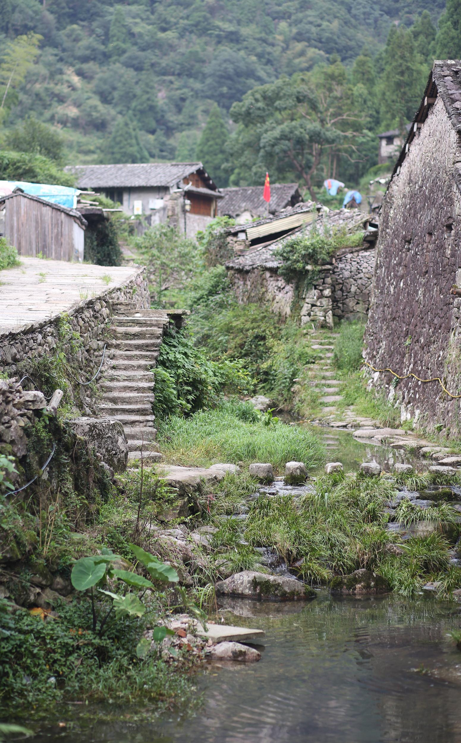 五星潭附近的埭头古村,也是盛夏避暑的绝佳去处。大约是因为村中没有可以戏水的溪流,如今的埭头古村相对冷清。但事实上,始建于宋元时期的这个古村,巨树甚多,浓荫蔽日,沿着卵石的小路和围墙前行,也是颇有凉意的。