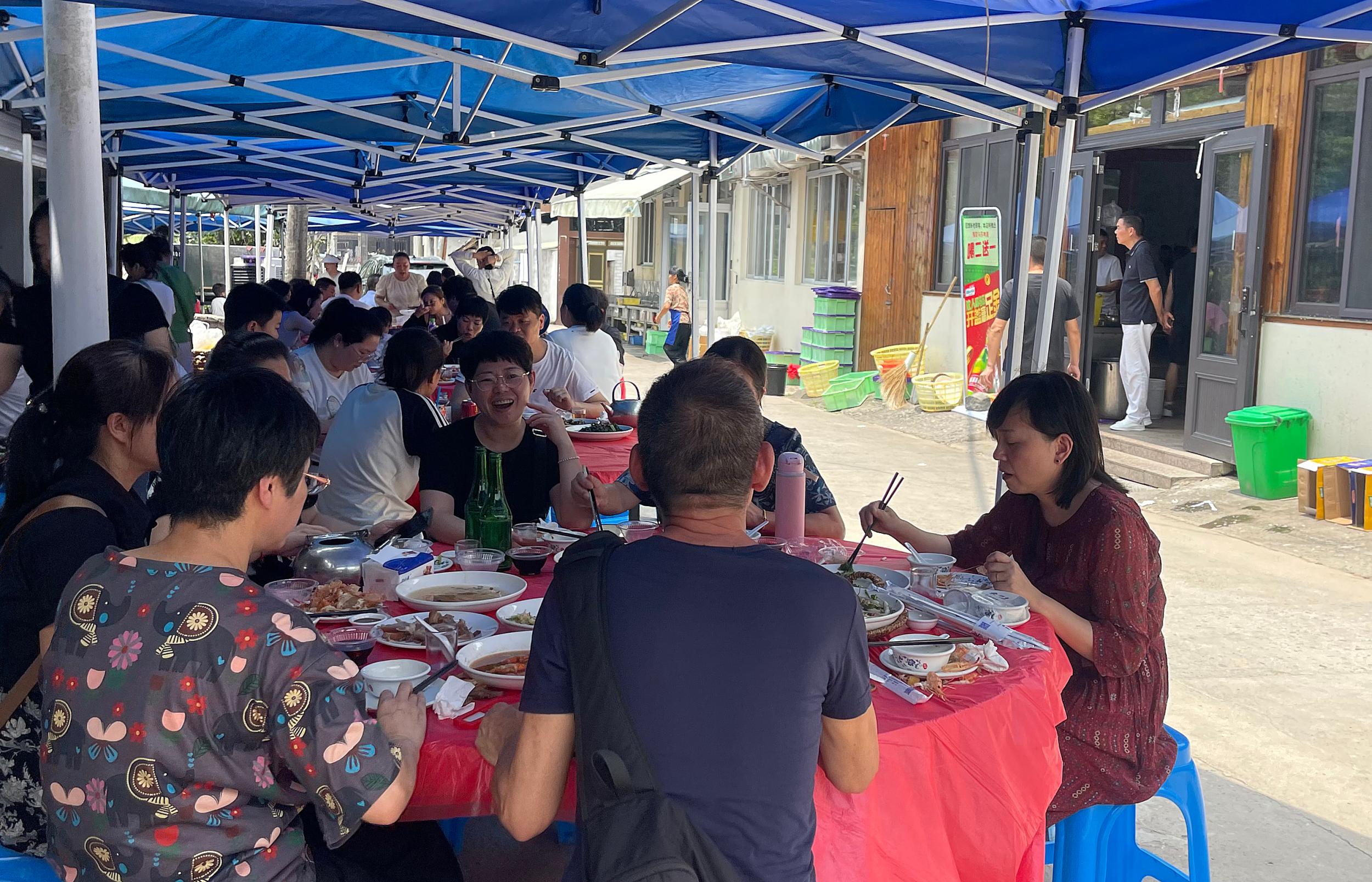 贤兴农家乐,周末的日子,餐桌甚至排到了户外。