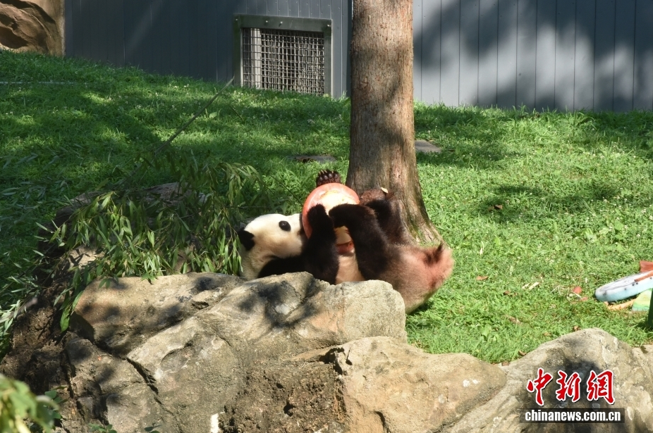 当地时间8月4日,旅居华盛顿美国国家动物园的大熊猫“宝力”迎来四周岁生日。这是“宝力”第一次在美国过生日,动物园当天给“宝力”准备了“生日蛋糕”庆生。图为与“宝力”一同赴美的大熊猫“青宝”,“青宝”将在今年9月12日迎来4岁生日。中新社记者 沙晗汀 摄
