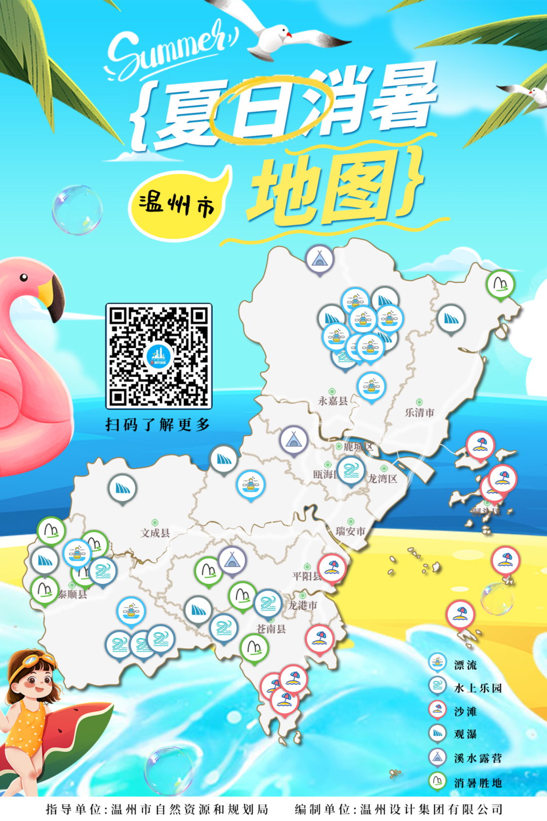 为助力打造“十五分钟便民生活圈”,提升公众生活便捷度,在温州市自然资源和规划局的指导下,温州设计集团有限公司精心编制了这份地图。无论是惊险刺激的户外漂流、水波荡漾的亲水乐园,还是凉风习习的纳凉胜地……那些触手可及的“清凉据点”,统统为你精准导航。