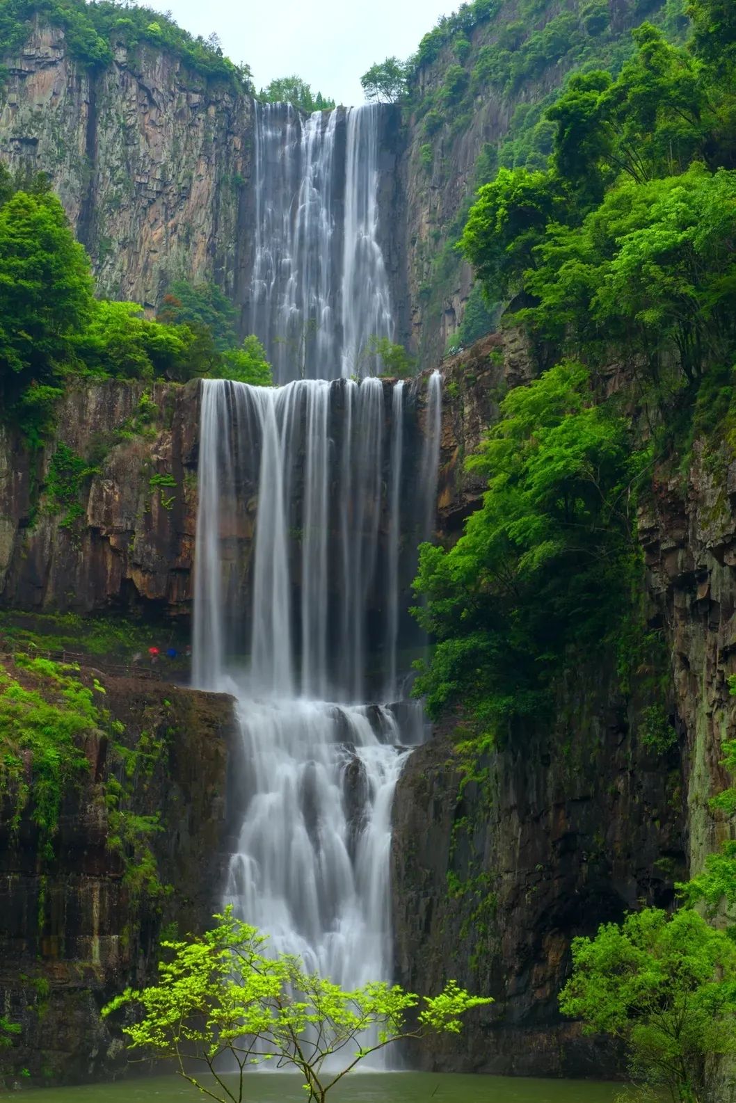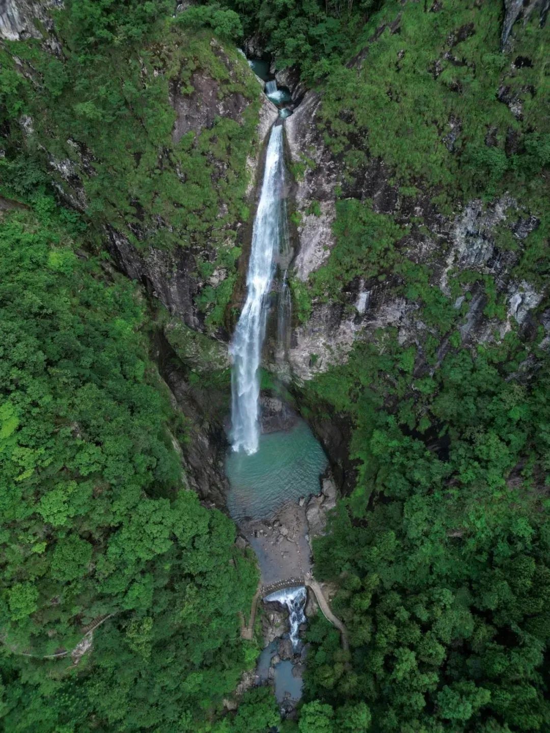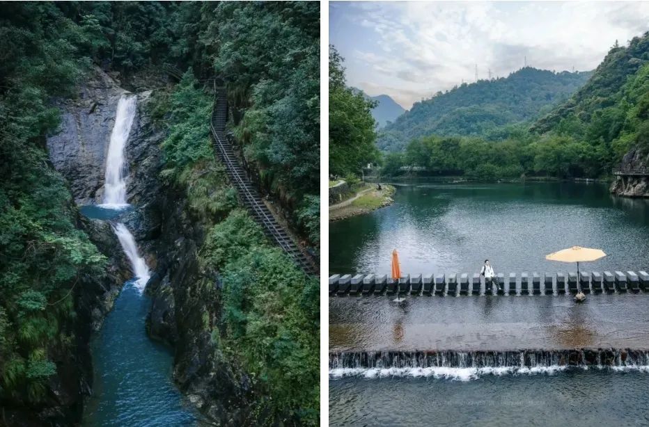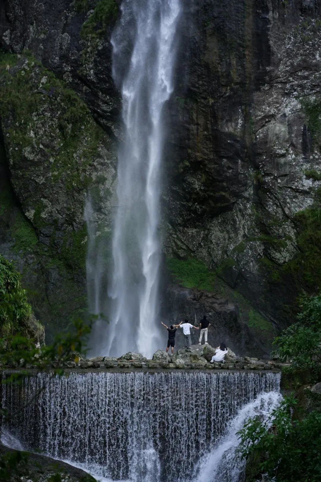 远远就能看到瀑布飞流直下,走近便是“疑是银河落九天”的震撼。水流直下落入潭中,再沿矴步下流形成二次瀑布,氛围感拉满,超级出片!