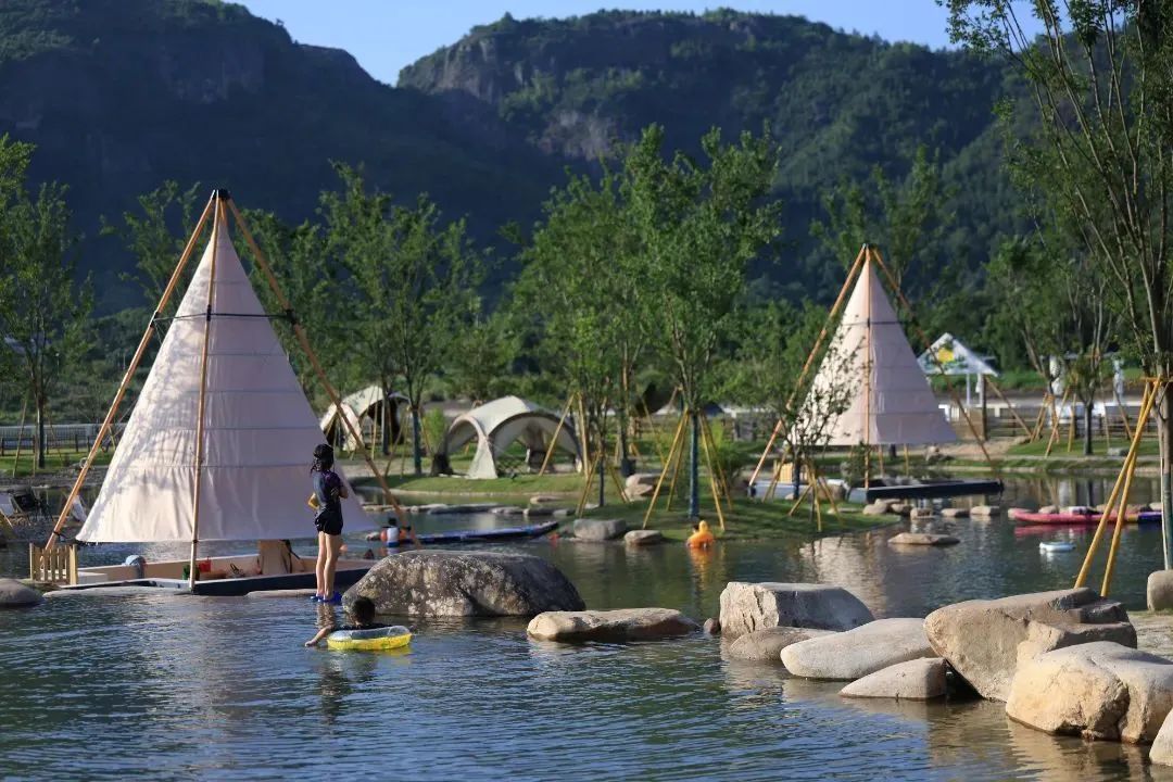 当盛夏的热浪席卷城市,空调外机轰鸣成夏日的背景音,不妨潜入楠溪江新晋落成的亲水秘境——小岛营地!