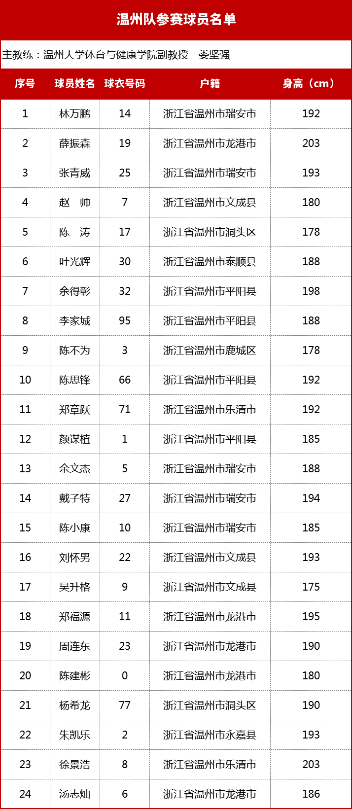 8月4日晚,浙江省篮球联赛组委会办公室对2025年浙江省城市篮球联赛城市争霸赛阶段参赛队名单进行公示,公示期为2025年8月4日至6日。在公示的名单中,温州有两支队伍参赛,分别是温州队和苍南队,各有24人,具体名单如下 ↓↓